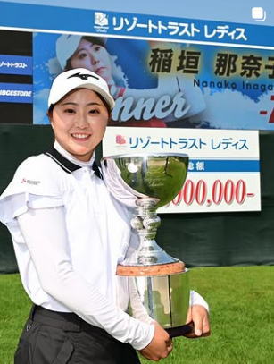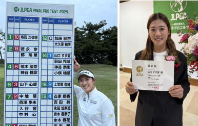 写真左下:67ストロークで女子の部優勝の芳賀恵夏選手 |